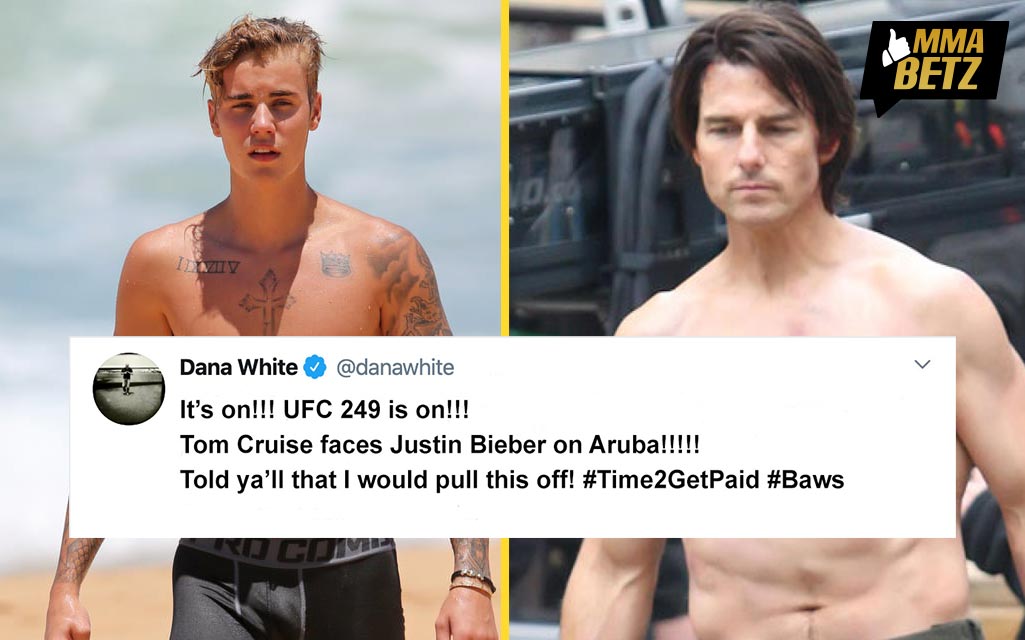 MMA-världen vaknade upp till den sensationella nyheten att Tom Cruise och Justin Bieber möts på UFC 249. UFC:s VD Dana White meddelade nyheten via Twitter under natten till onsdagen. Detta innebär att den tilltänkta matchen mellan Khabib Nurmagomedov och Tony Ferguson inte kommer att bli av denna gång.