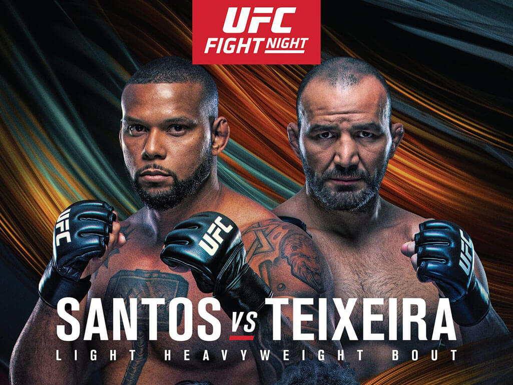 Teixeira (31-7) har vunnit fyra raka matcher där han senast avslutade forne titelutmanaren Anthony Smith genom TKO. Dessförinnan vann han över Nikita Krylov genom delat domslut och dessförinnan Ion Cutelaba via rear-naked-choke.