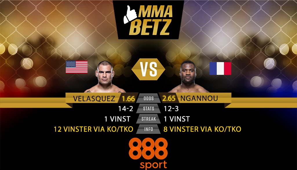 Vår spelexpert Sarp Yesil fortsätter att leverera sina bästa speltips inför kommande UFC-galor. Denna vecka har Sarp hittat två fina speltips i söndagens tungviktsmöte mellan den forne mästaren Cain Velasquez och den hårt slående Francis Ngannou.