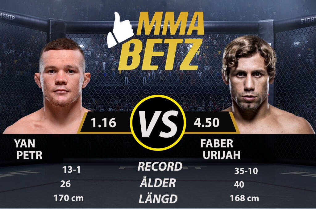 Ingen kan ta ifrån Faber att det var en fantastisk comeback efter pensionen. Ingen kan heller ta ifrån honom att han är en pioneer i lättvikts-divisionen. Men Yan är den nya generationens fighter. Fabers största chans mot Yan är att ta matchen till marken, men ryssen har ett bra nedtagningsförsvar och kommer straffa Faber för varje missad nedtagning. Yan är snabb och har dessutom kraft i slagen och det är också detta som kommer avsluta matchen.