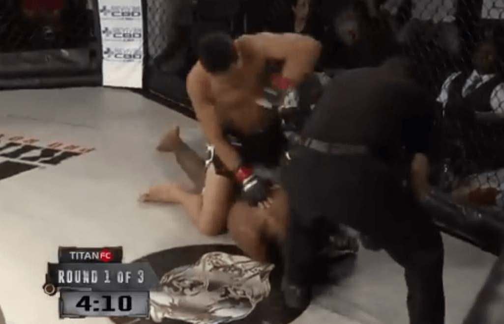 En domarskandal ägde rum under gårdagens Titan FC 56. I matchen mellan Landon Quinones och Calvin Glover verkade det som att domaren inte brydde sig att Glover gav upp när han fick motta ett par hårda smällar av Quinones på backen.